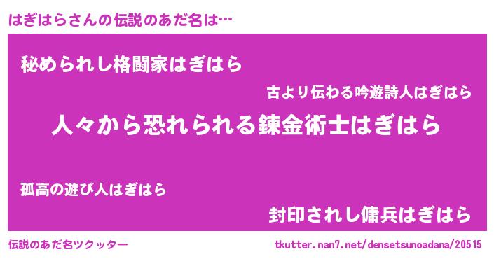 | ヒーロー風カッコイイあだ名 | 『正義の使者はぎはら』『仮面ハギダー』 |
