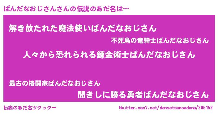 | ヒーロー風カッコイイあだ名 | 『友情の使者ばんだなおじさん』 |