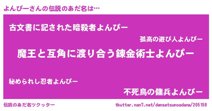 | ヒーロー風カッコイイあだ名 | 『愛の使者よんぴー』『仮面ヨンダー』 |