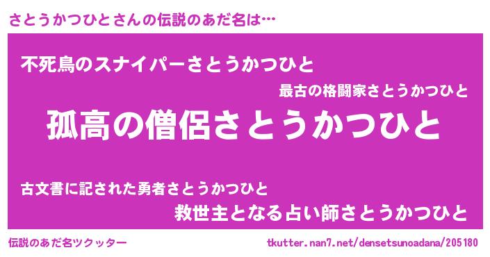 | 意味不明あだ名 | 『住所不定無職さとうかつひと(14歳)』 |