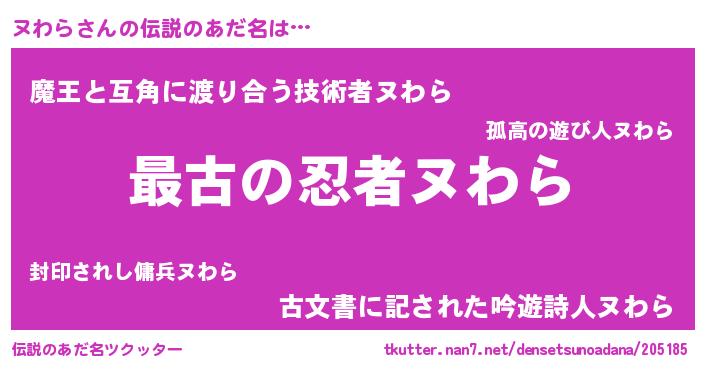 | ヒーロー風カッコイイあだ名 | 『ウルトラヌわらマン』『最強戦士ヌワラ』 |