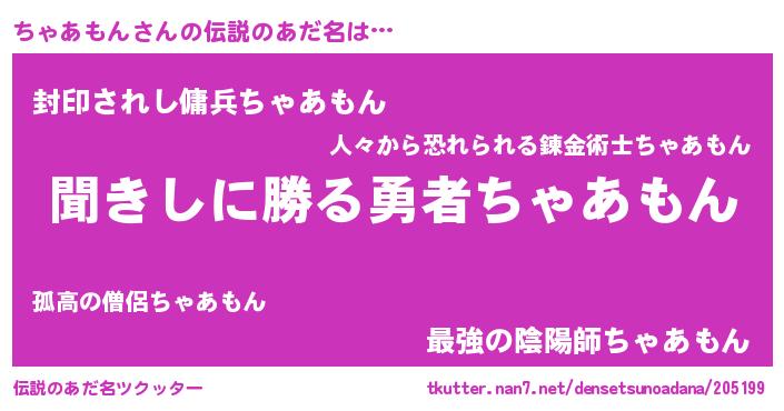 | 意味不明あだ名 | 『自称ちゃあもん』『永久保存ちゃあもん』 |