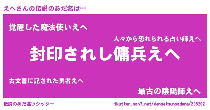 | 胡散臭い通販商品みたいなあだ名 | 『億万長者になれる水晶球…その名も「えへ」』 |