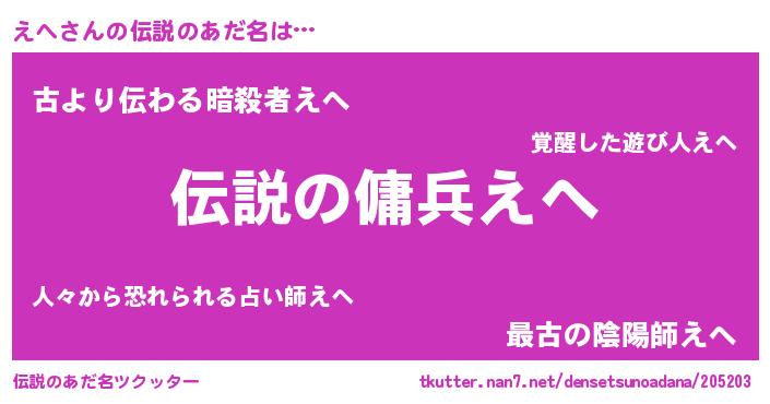 | 意味不明あだ名 | 『自称えへ』『住所不定無職えへ(14歳)』 |