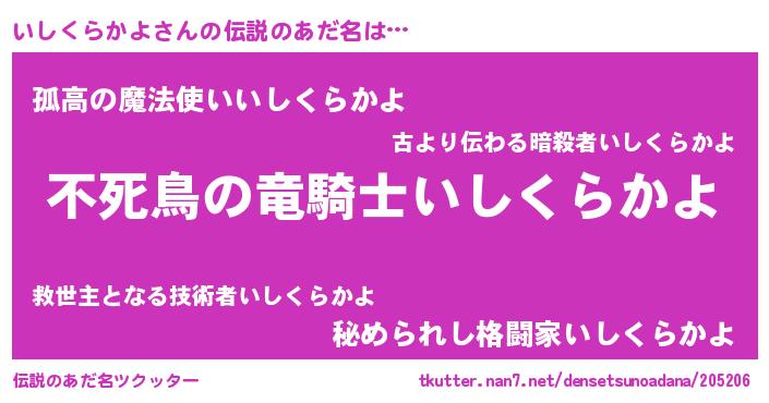 | 意味不明あだ名 | 『住所不定無職いしくらかよ(4歳)』 |
