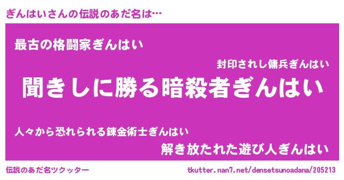 | 胡散臭い通販商品みたいなあだ名 | 『絶対に幸福をもたらす健康食品…その名も「ぎんはい」』 |