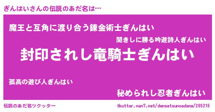| 意味不明あだ名 | 『住所不定無職ぎんはい(13歳)』 |