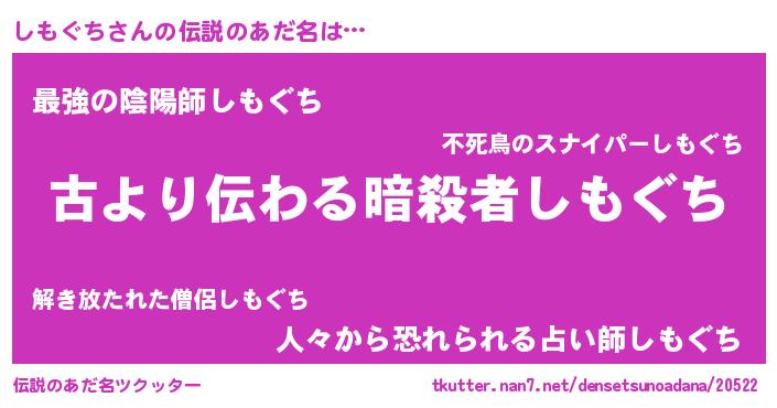 | ヘコむあだ名 | 『しもぐち(爆)』『酢こんぶ』 |