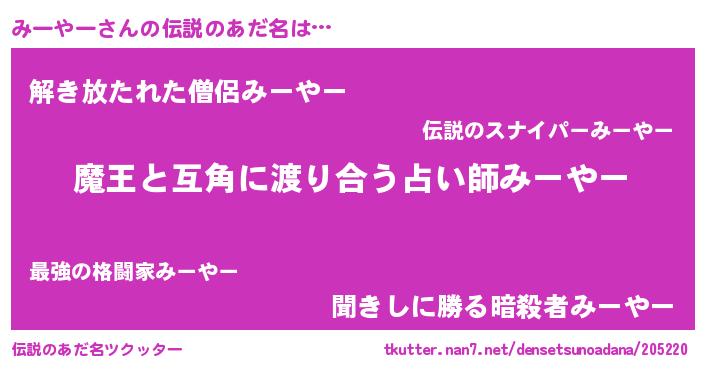 | 意味不明あだ名 | 『眠気覚ましガムみーやー味』 |