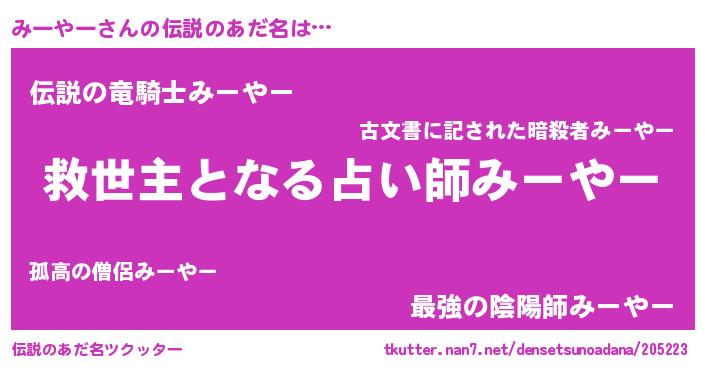 | 意味不明あだ名 | 『眠気覚ましガムみーやー味』 |