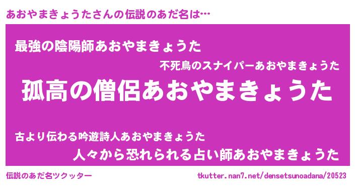 | ポケモン風あだ名 | 『ヒアオヤマキョウタ』『アーオイ』 |