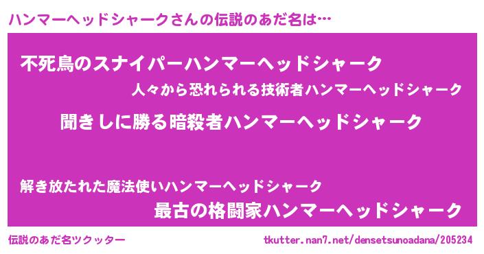 | 欧米人風あだ名 | 『ダレノガレハンマーヘッドシャーク』 |
