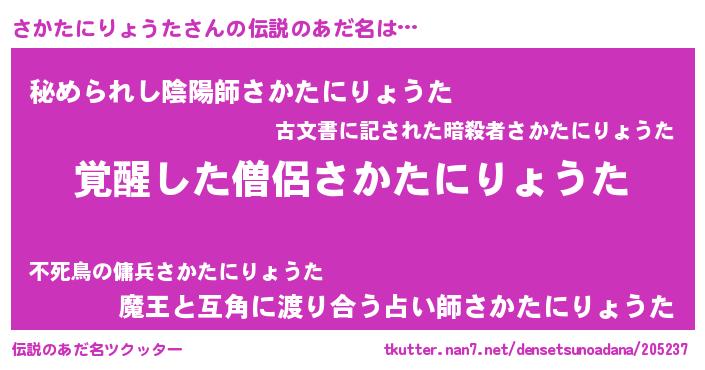 | ヒーロー風カッコイイあだ名 | 『炎刃騎士サカ』『ネオサカタニリョウタ』 |