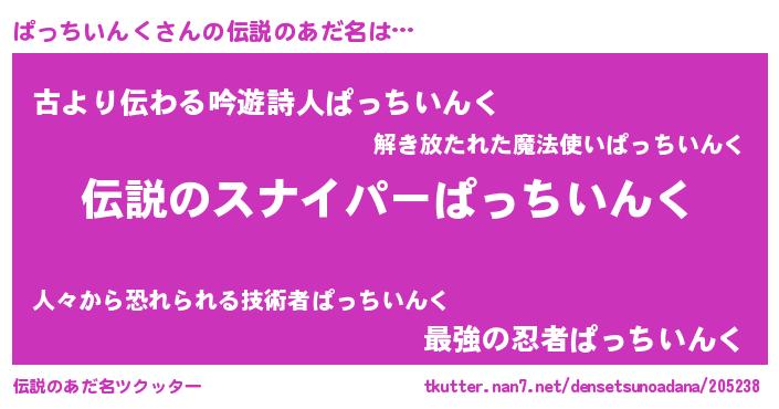 | ヒーロー風カッコイイあだ名 | 『スーパーパッチインク』『仮面パッダー』 |