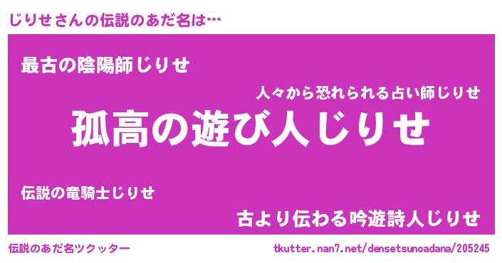 | 女子向けラノベタイトル風あだ名 | 『じりせは平凡を望む』『闇のじりせ』 |