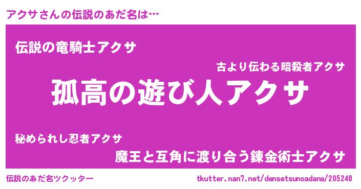 | 意味不明あだ名 | 『自称アクサ』『住所不定無職アクサ(12歳)』 |