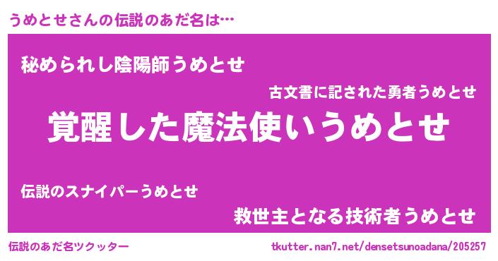 | 女子向けラノベタイトル風あだ名 | 『うめとせ様がみてる』 |