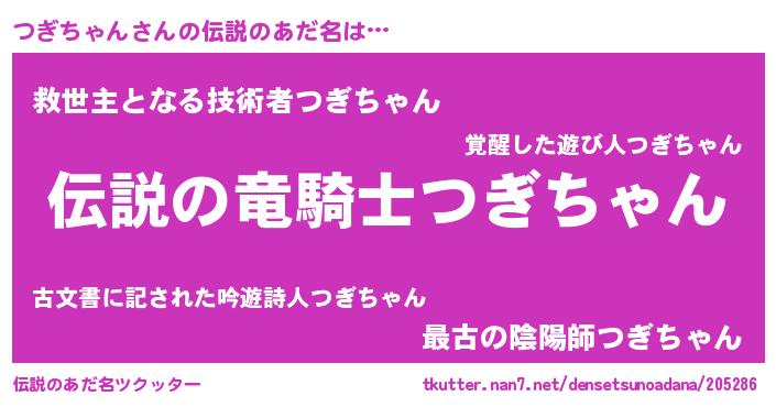 | ヒーロー風カッコイイあだ名 | 『スーパーツギチャン』『仮面ツギダー』 |