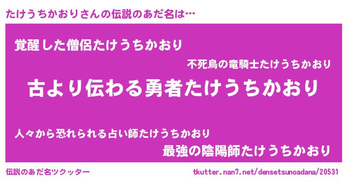 | ヒーロー風カッコイイあだ名 | 『ネオタケウチカオリ』『幻影騎士タケ』 |