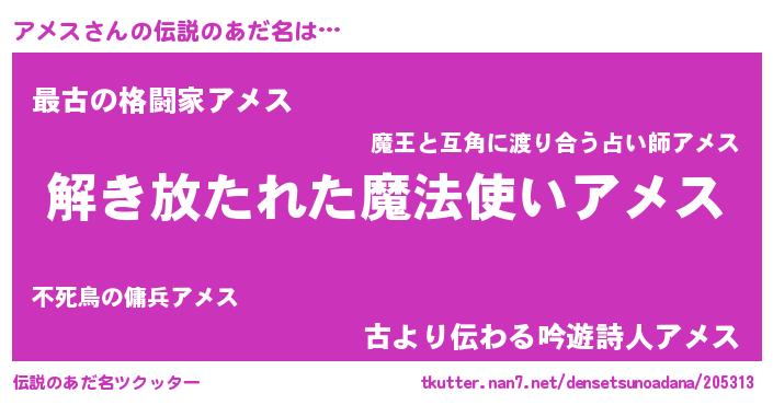 | 意味不明あだ名 | 『自称アメス』『とにかく怪しいアメス』 |