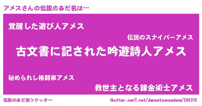 | ヘコむあだ名 | 『アメス(小並感)』『アメっぺ』 |