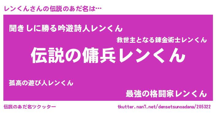 | ヘコむあだ名 | 『レンにゅー』『レンくん(小並感)』 |