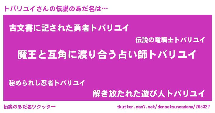 | ヒーロー風カッコイイあだ名 | 『愛の使者トバリユイ』『ネオトバリユイ』 |