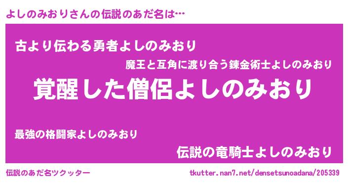 | ヘコむあだ名 | 『よしっ子』『よしのみおり(笑)』 |