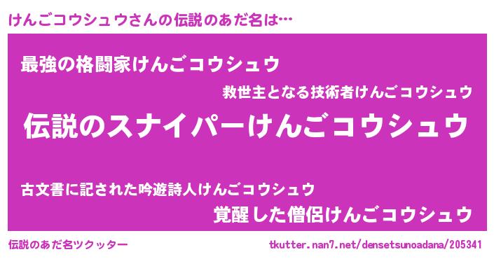 | 男性向けラノベタイトル風あだ名 | 『けんごコウシュウの憂鬱』 |