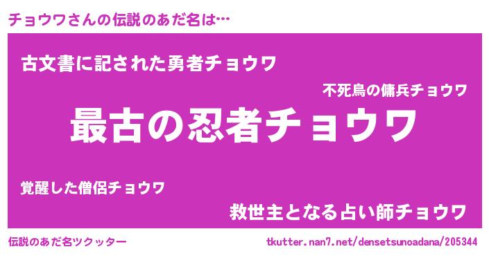 | ヒーロー風カッコイイあだ名 | 『ウルトラチョウワマン』『ネオチョウワ』 |