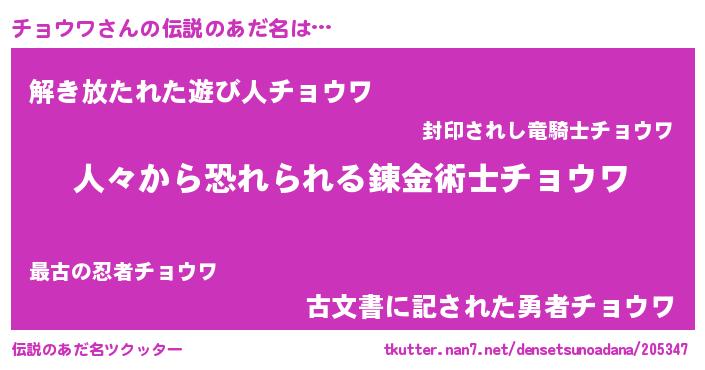 | ヒーロー風カッコイイあだ名 | 『正義の使者チョウワ』『魔戒騎士チョ』 |