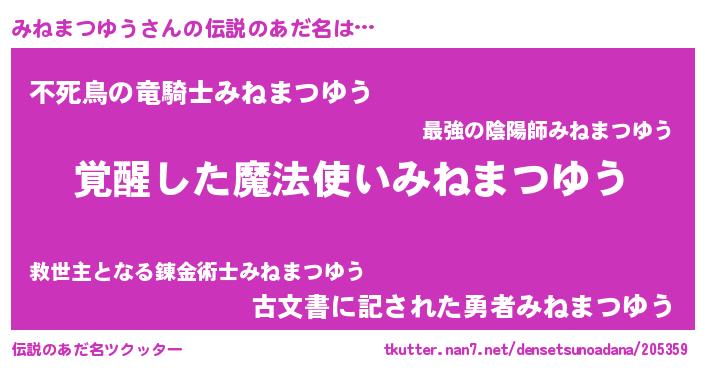 | ヒーロー風カッコイイあだ名 | 『仮面ミネダー』『魔戒騎士ミネ』 |