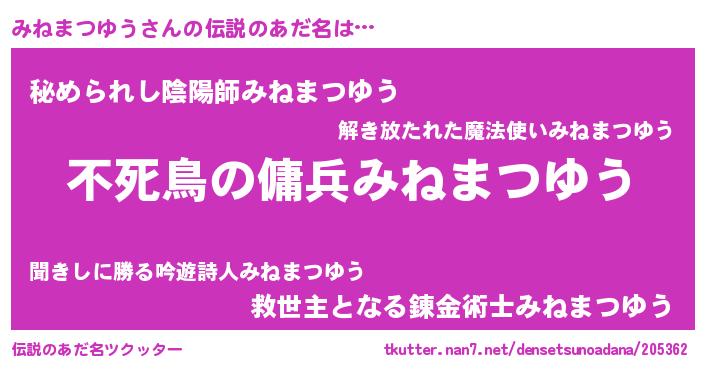 | 胡散臭い通販商品みたいなあだ名 | 『モテモテ間違いなし水晶球…その名も「みねまつゆう」』 |