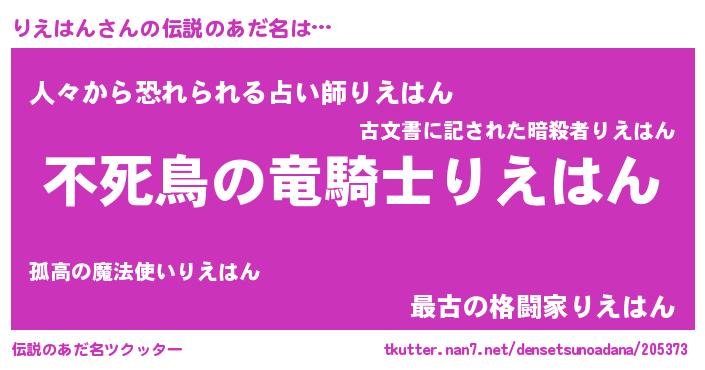 | ヒーロー風カッコイイあだ名 | 『スーパーリエハン』『最強戦士リエハン』 |