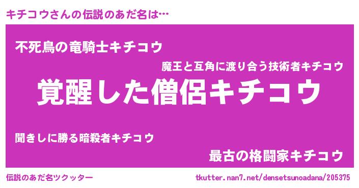| ヒーロー風カッコイイあだ名 | 『仮面キチダー』『魔戒騎士キチ』 |