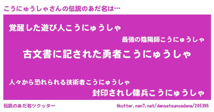 | ファンタジー風あだ名 | 『コウディッシュ』『ゼコウトゥ』 |