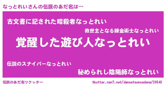 | 男性向けラノベタイトル風あだ名 | 『なっとれいの嫁は女の子じゃないと思った?』 |