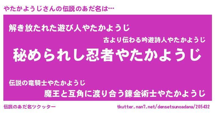 | 欧米人風あだ名 | 『アンジェラ・やたかようじ』 |
