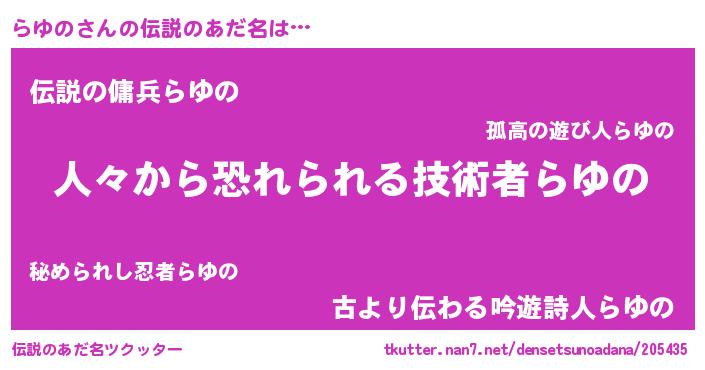 | ヒーロー風カッコイイあだ名 | 『仮面ラユダー』『愛の使者らゆの』 |