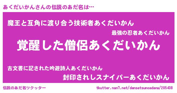 | 意味不明あだ名 | 『とにかく怪しいあくだいかん』 |