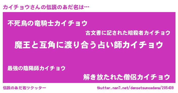 | ピコ太郎風あだ名 | 『カカ太郎』『カコ一郎』『カイ史郎』 |