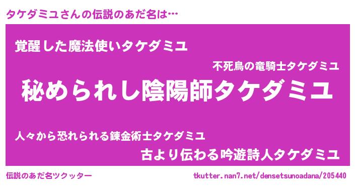 | ファンタジー風あだ名 | 『ユリタケヴァット』『ファントムタケス』 |