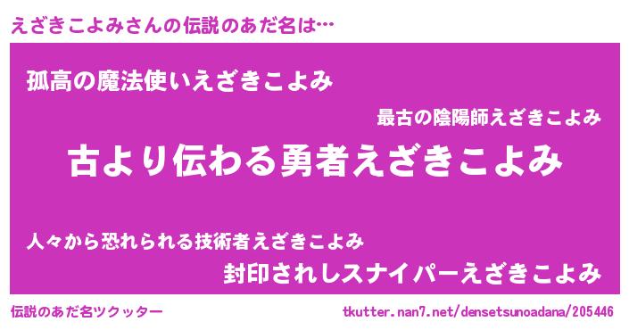 | ヘコむあだ名 | 『えざきこよみ(苦笑)』『えざお』 |