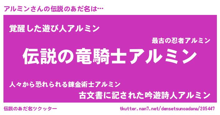 | ヒーロー風カッコイイあだ名 | 『超時空戦士アルミン』『炎刃騎士アル』 |