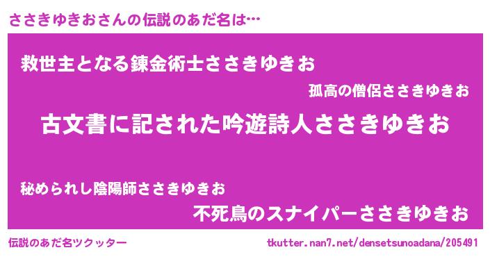 | 意味不明あだ名 | 『自称ささきゆきお』 |