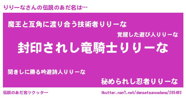 | ファンタジー風あだ名 | 『リリフェル』『ユリリリヴァット』 |