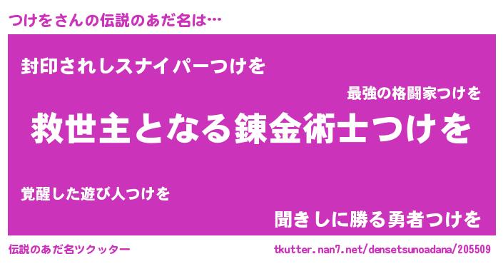 | ヒーロー風カッコイイあだ名 | 『慈愛の使者つけを』『スーパーツケヲ』 |