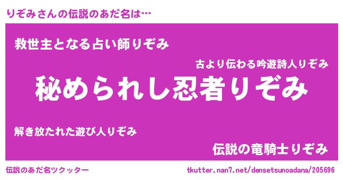 | ファンタジー風あだ名 | 『エターナルリゾミー』『ヴァルリゾーナ』 |