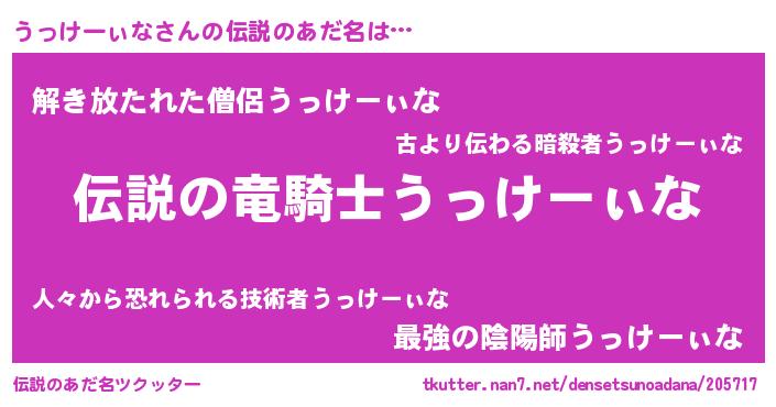 | 胡散臭い通販商品みたいなあだ名 | 『必ず成功するブレスレット…その名も「うっけーぃな」』 |