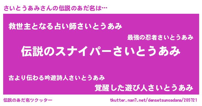 | 胡散臭い通販商品みたいなあだ名 | 『必ず成功する霊験あらたかなお札…その名も「さいとうあみ」』 |